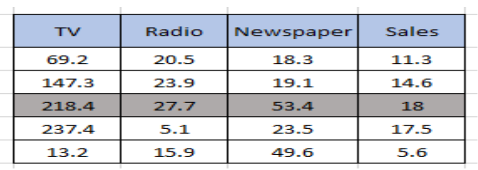 Advertising dataset contain 200 rows and 4 columns. Dataset provides
