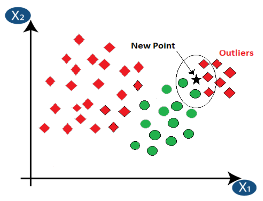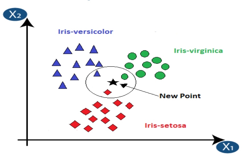 Suppose K = 5 hence select 5 nearest neighbors of new point we can see in above