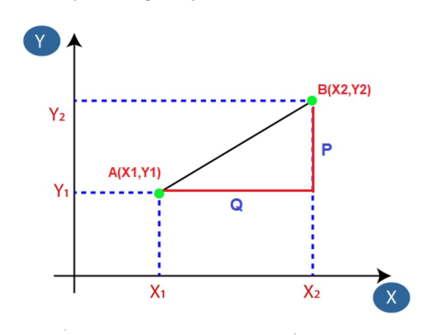 Distance between two points i.e. A(X1,Y1) and B(X2,Y2) calculate by using